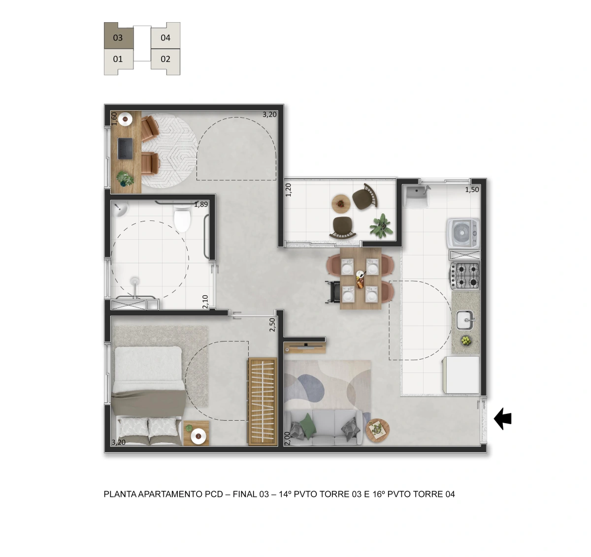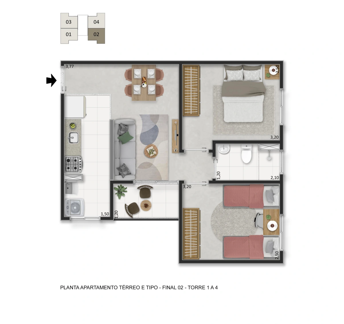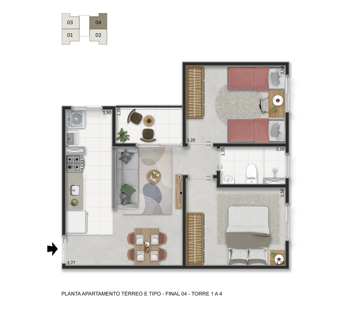 - Facilidades do Condomínio: Portaria com acesso por biometria, bicicletário, infraestrutura para minimercado e lazer entregue decorado e mobiliado.