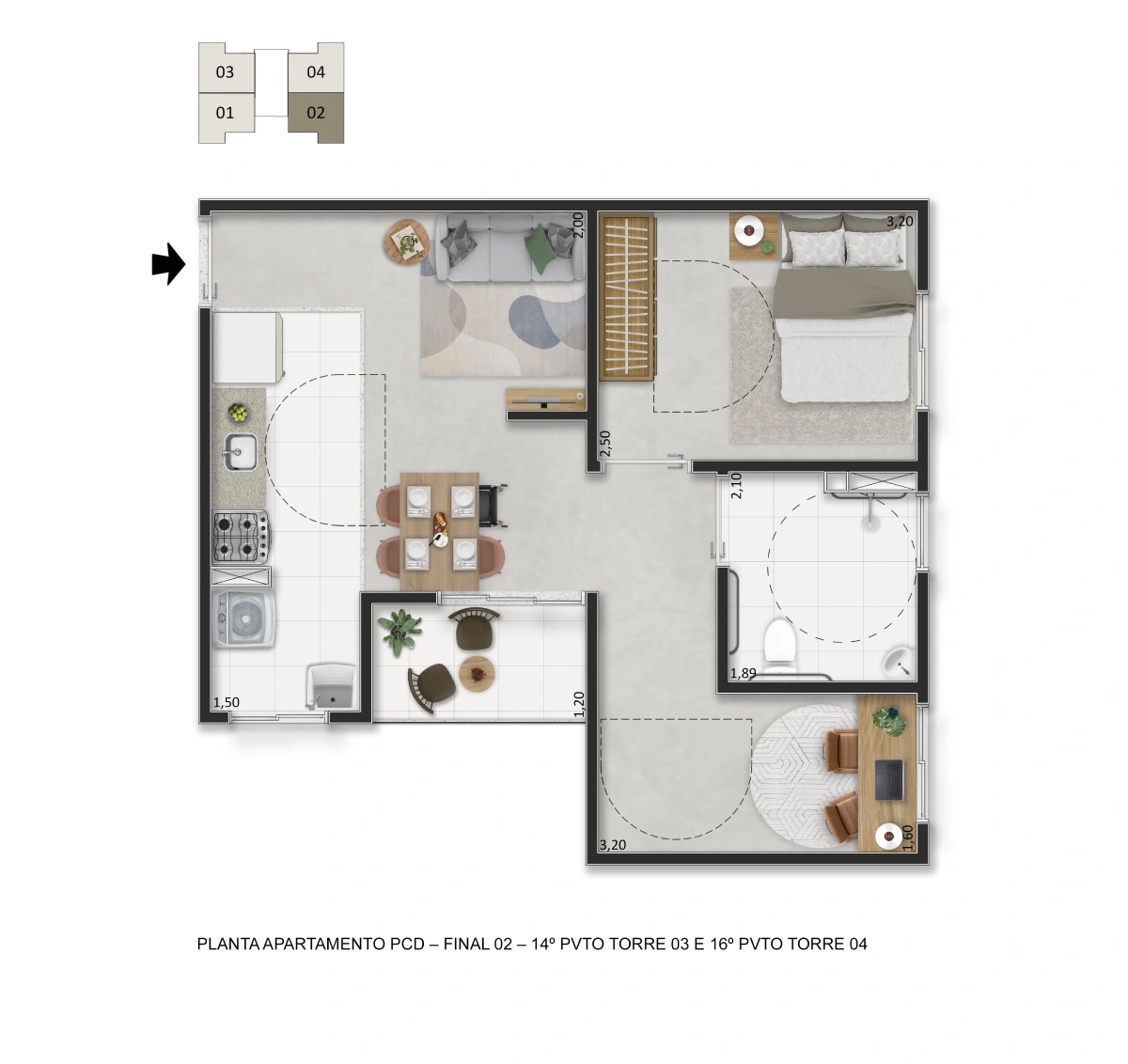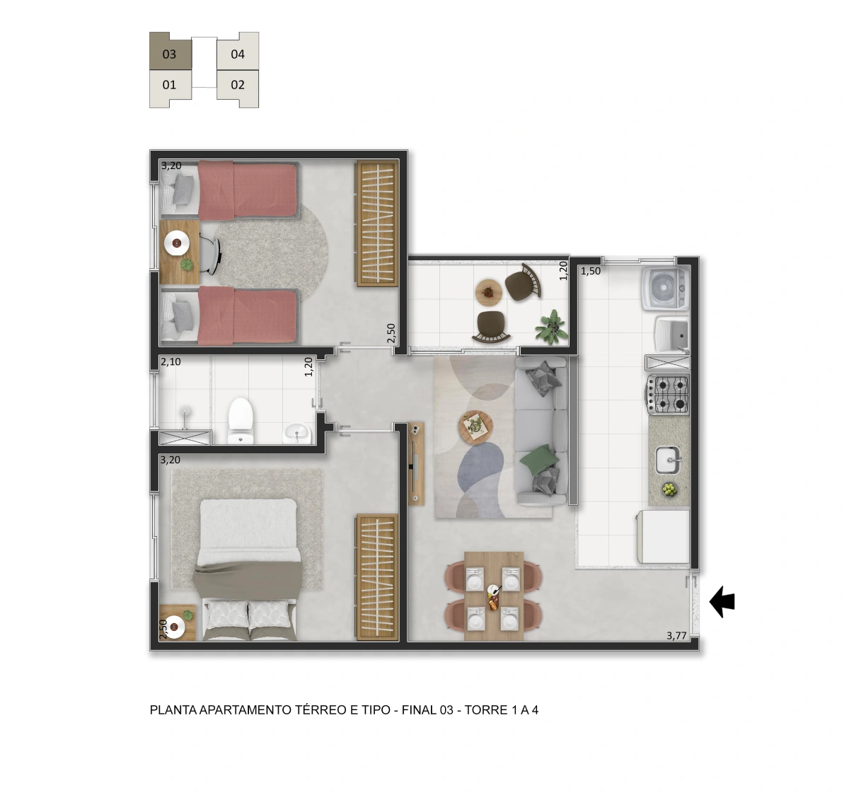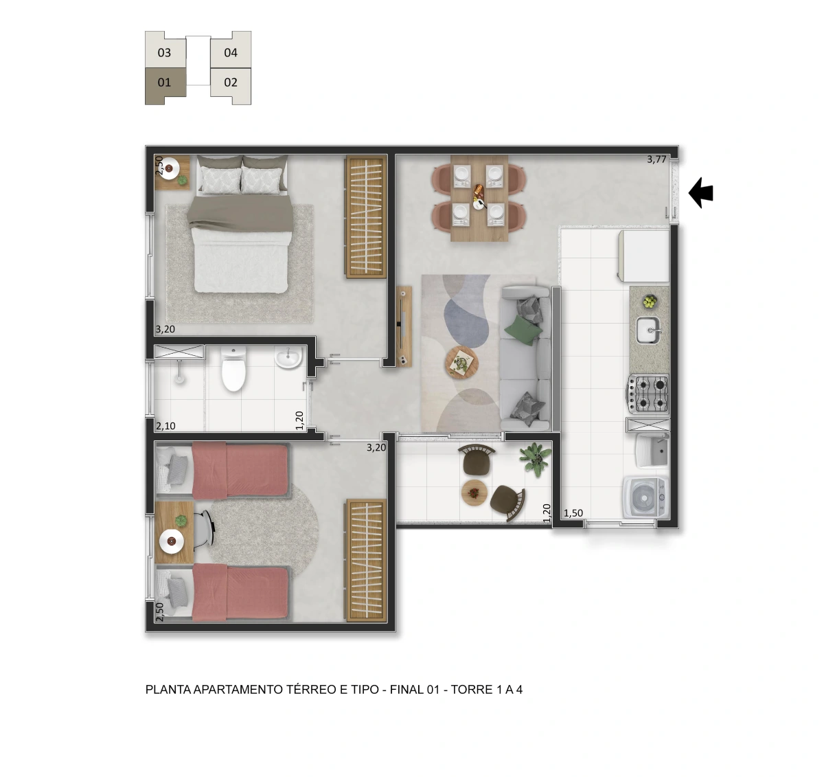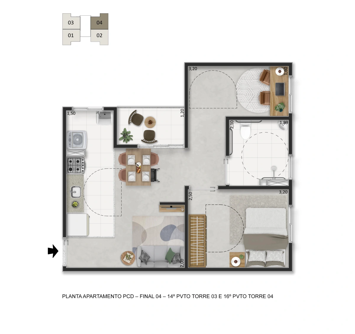 - Facilidades do Condomínio: Portaria com acesso por biometria, bicicletário, infraestrutura para minimercado e lazer entregue decorado e mobiliado.