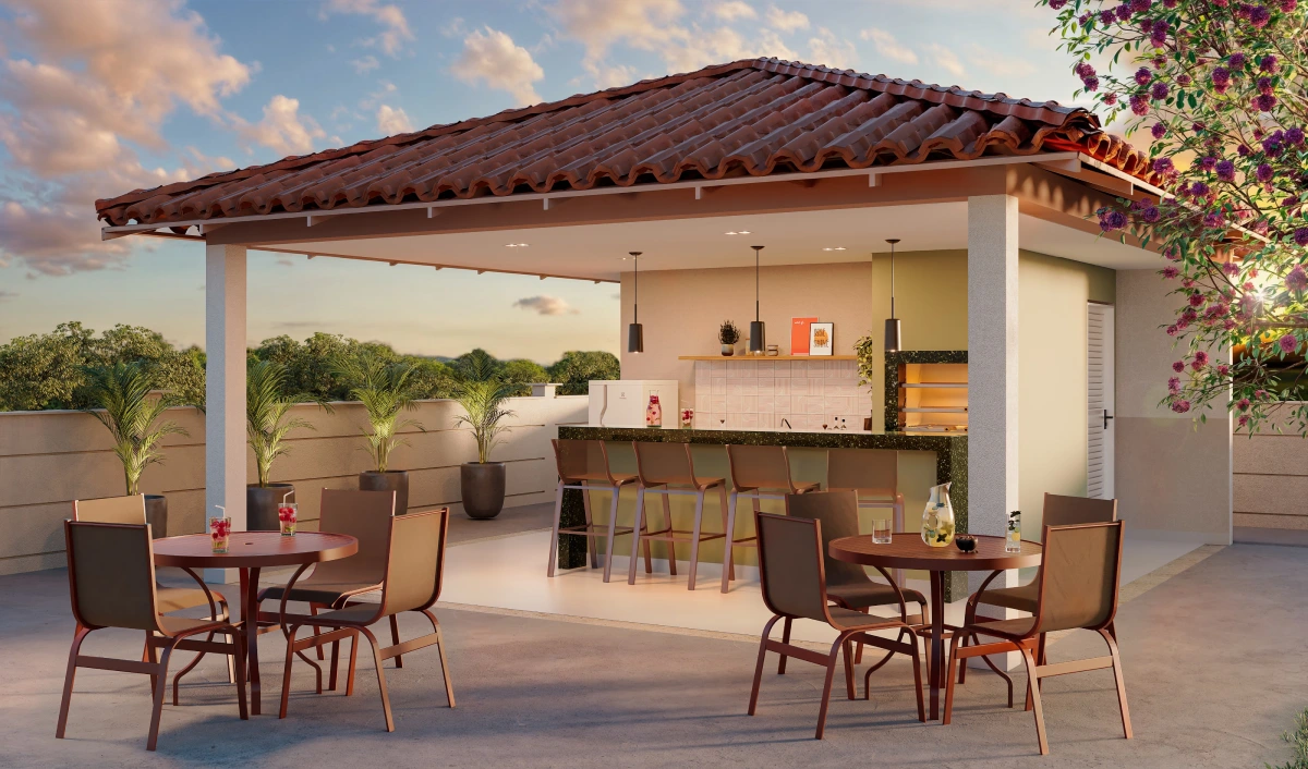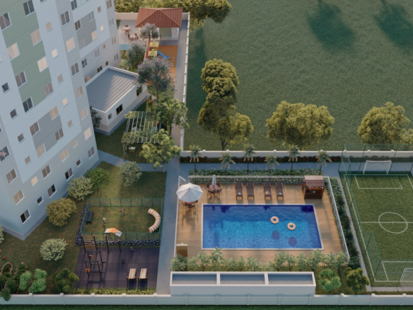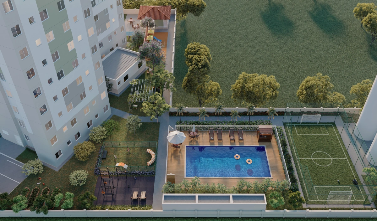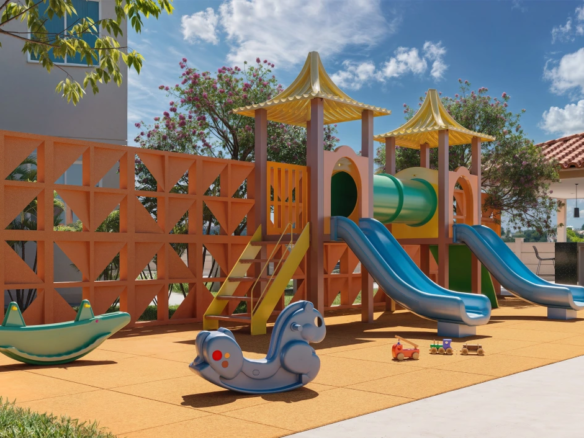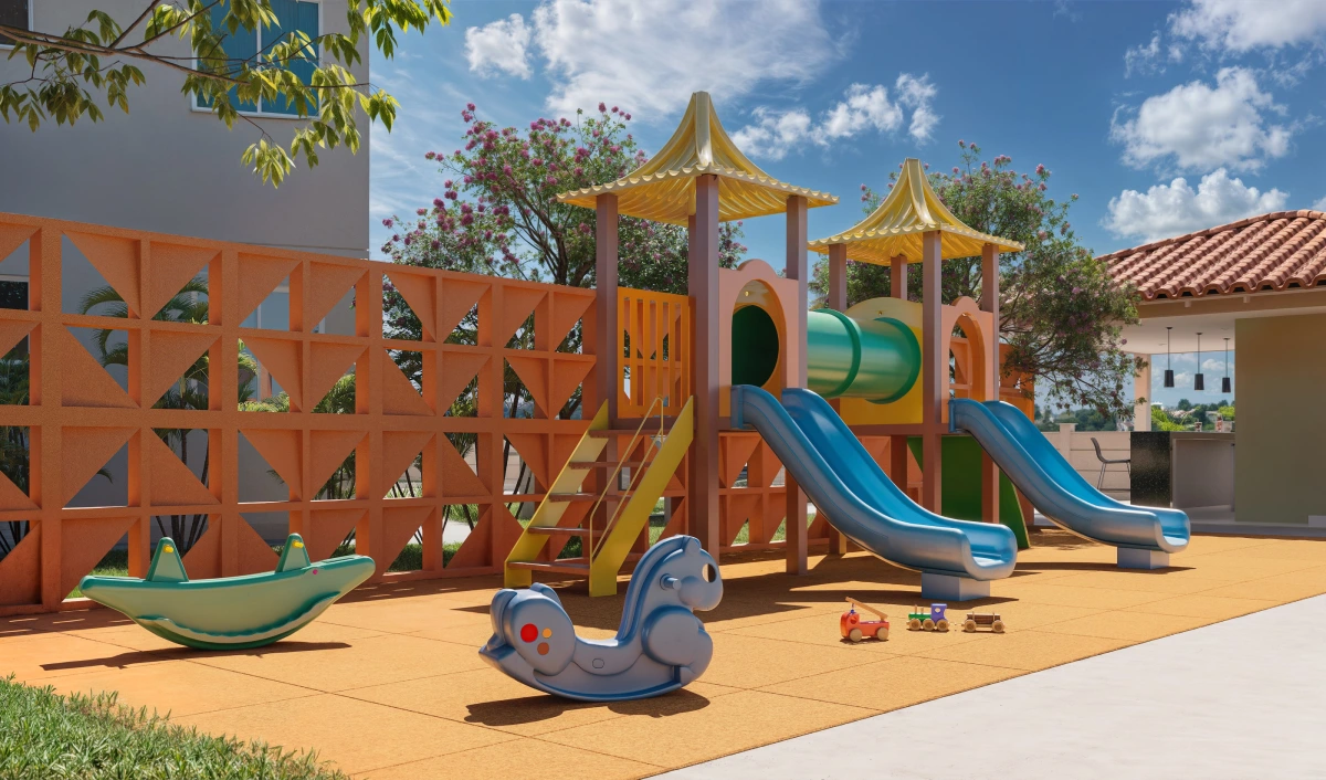 - Convivência: Espaço gourmet, área de jogos externos e playground.